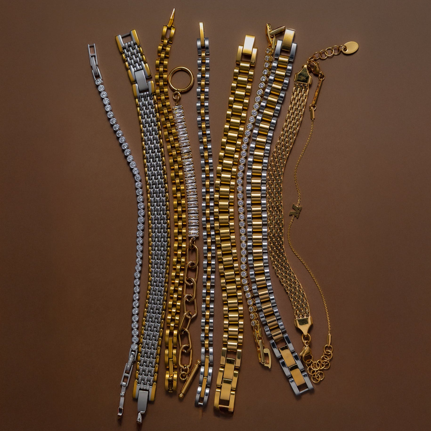 Waterproof Gold Tennis and Paperclip Bracelet