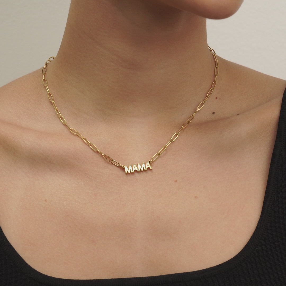 24K Gold Mama Paperclip Pendant Necklace