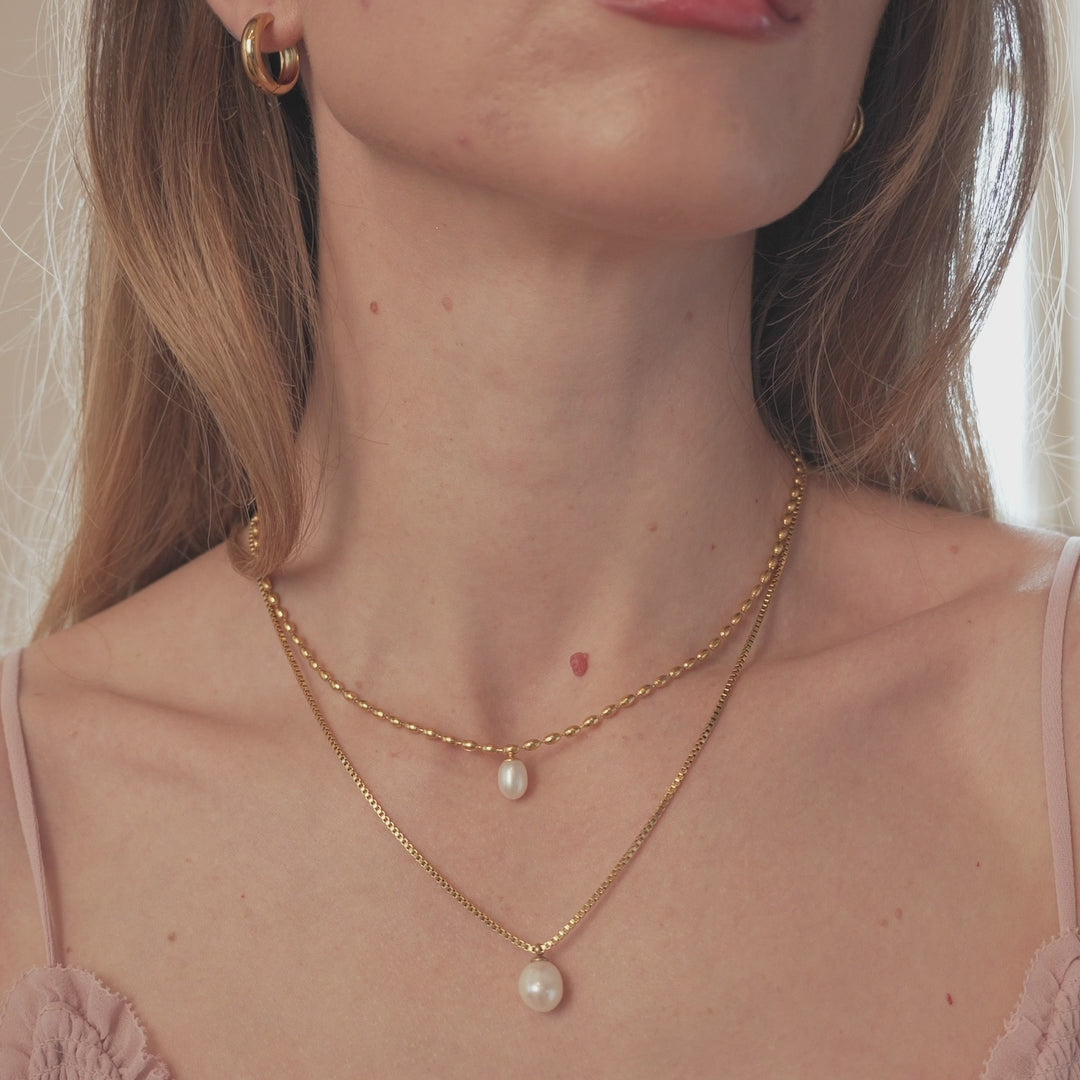 Waterproof Gold Box Chain Pearl Pendant Necklace