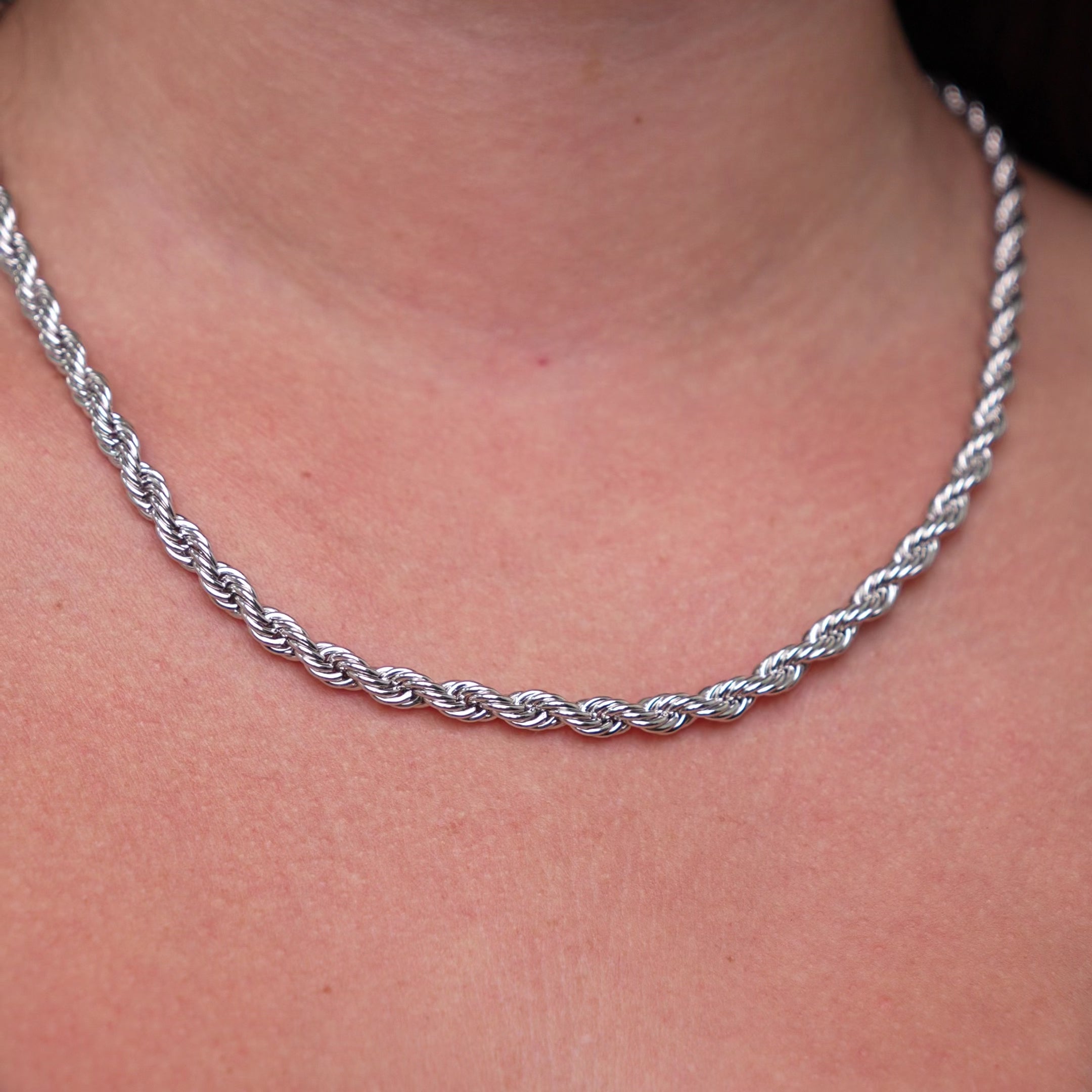 Waterproof Silver Chunky Twisted Necklace