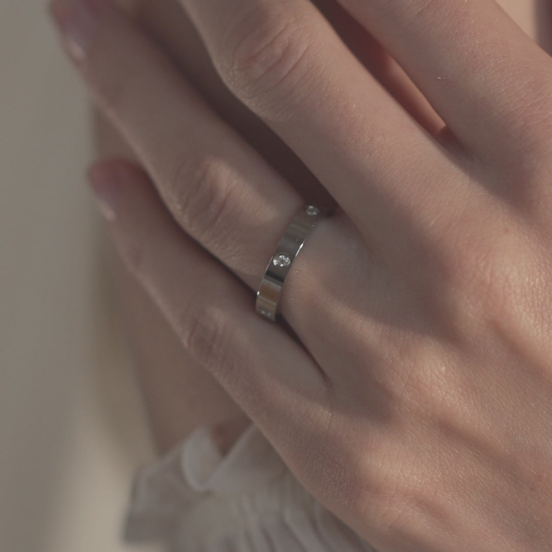 Waterproof Silver Diamond Ring Band