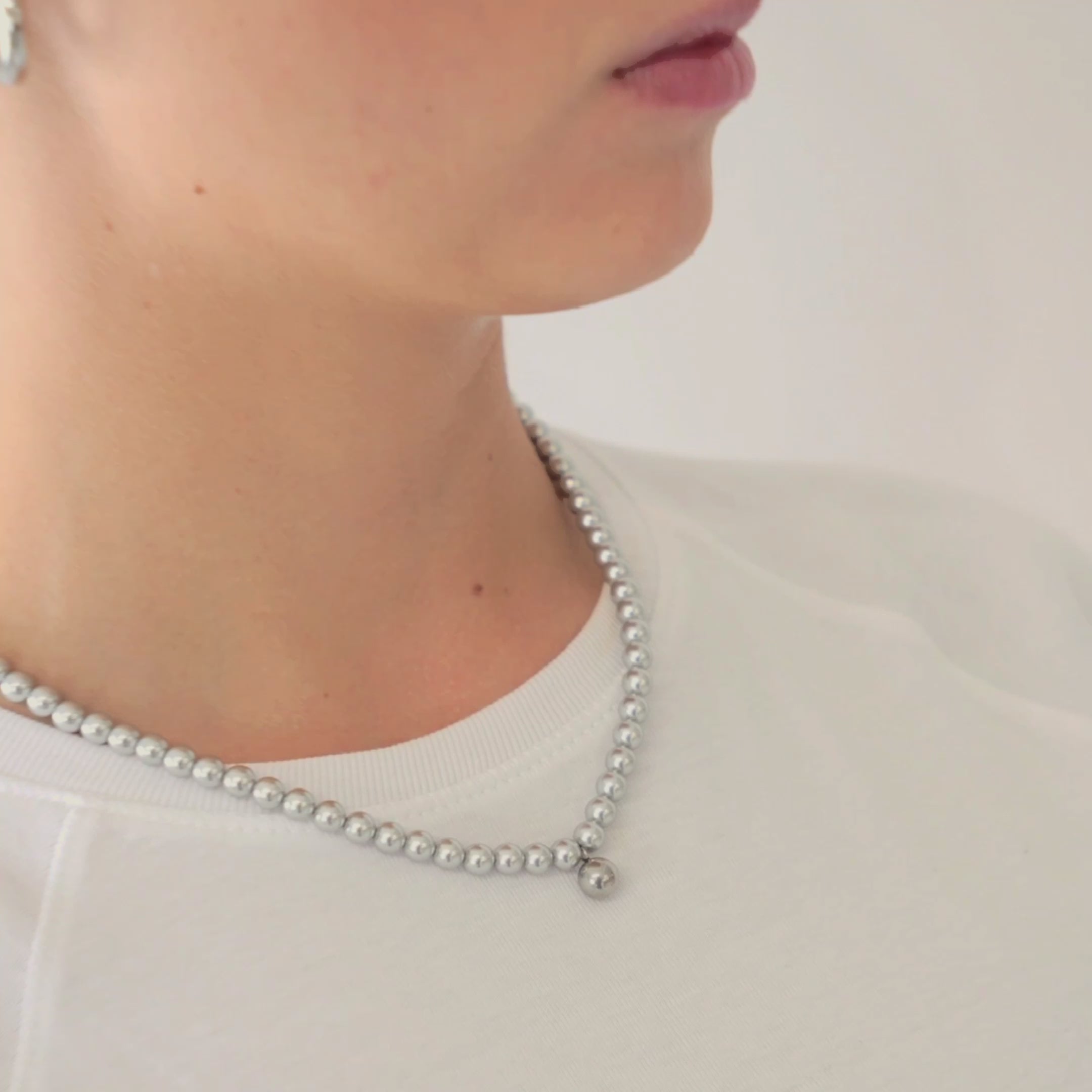 Waterproof Silver Pearls Necklace